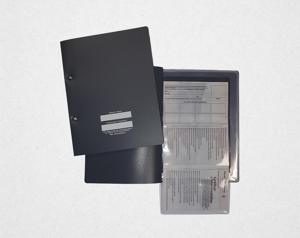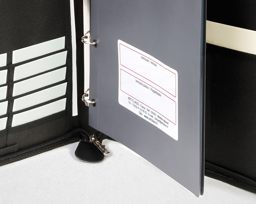 La première de couverture inscriptible permet d’identifier facilement le contenu ou le véhicule concerné. Les pochettes transparentes intérieures assurent une bonne lisibilité des documents et une protection contre l’usure, les manipulations répétées et les salissures.