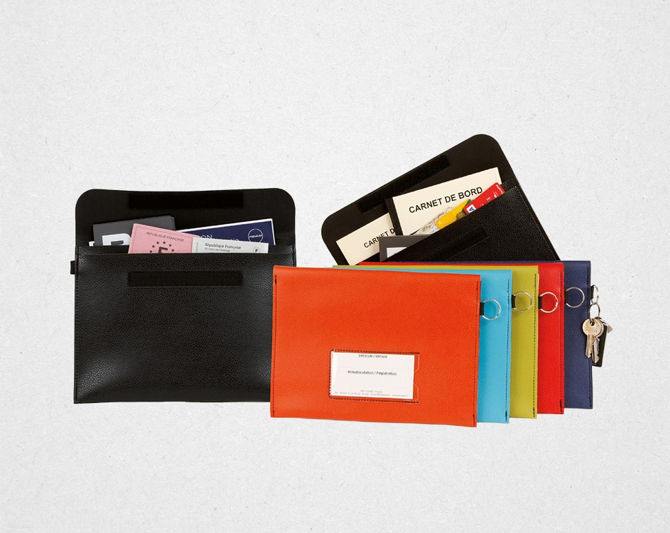 Elle permet de regrouper les papiers indispensables du véhicule : carte grise, attestations, documents administratifs ou fiches de suivi. Son format compact facilite son rangement dans une boîte à gants, un vide-poche ou un compartiment de portière.