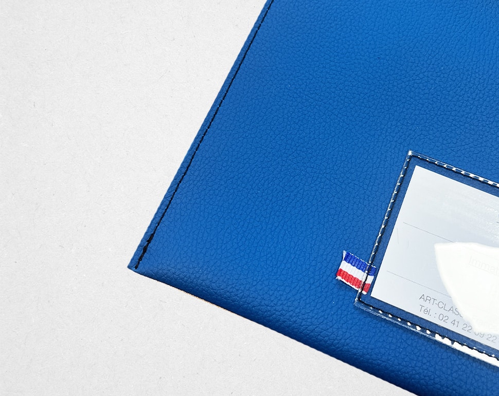 Conçue pour un usage quotidien, la pochette EcoClass est fabriquée en simili cuir imperméable et lavable, offrant une protection efficace contre l’humidité et les manipulations répétées. Son système de rabat avec fermeture velcro assure un maintien sécurisé des documents tout en restant simple d’utilisation.