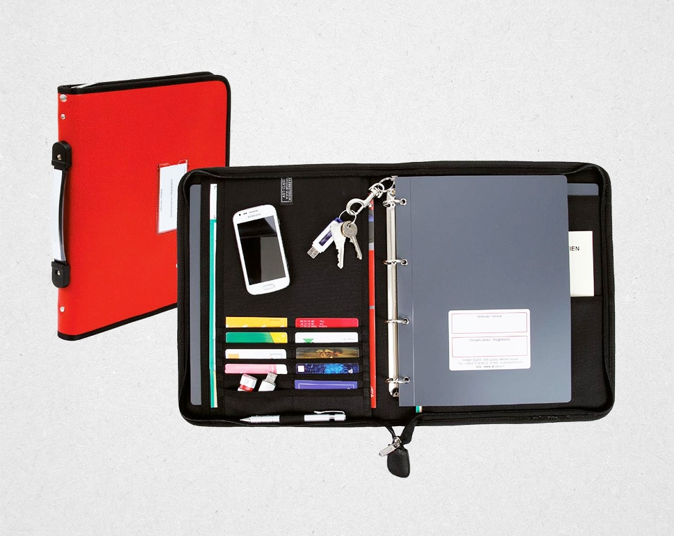 Le porte-documents avec poignée plate est conçu pour permettre aux professionnels de transporter et manipuler facilement leurs documents, tout en conservant un format compact et discret. Sa poignée plate intégrée assure une prise en main confortable sans encombrement supplémentaire.